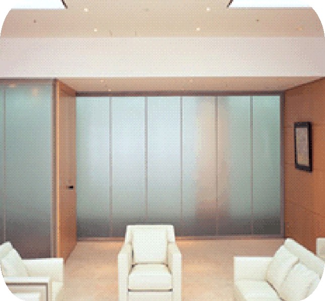 Painéis de vidro causticado oferecem um meio gracioso de criar um ambiente de espaço inteiramente novo, luz e beleza. Contudo, eles são muito dispendiosos e não podem ser modificados uma vez causticados.